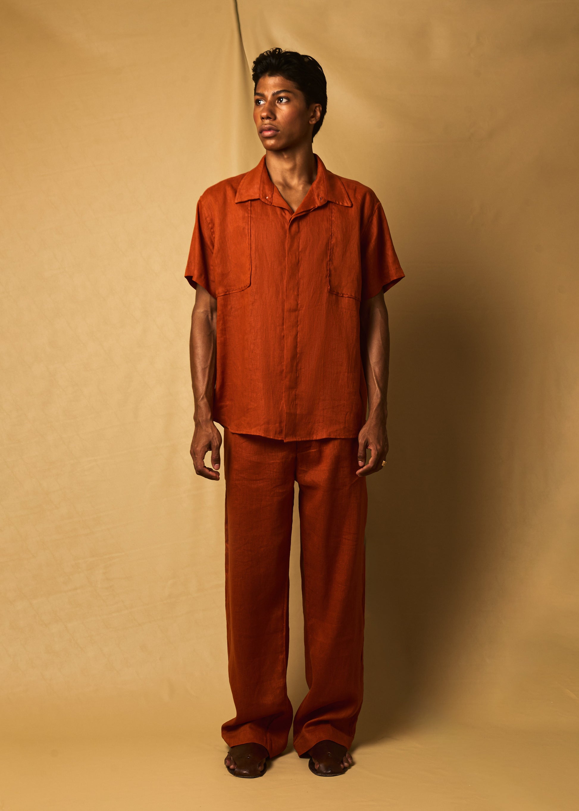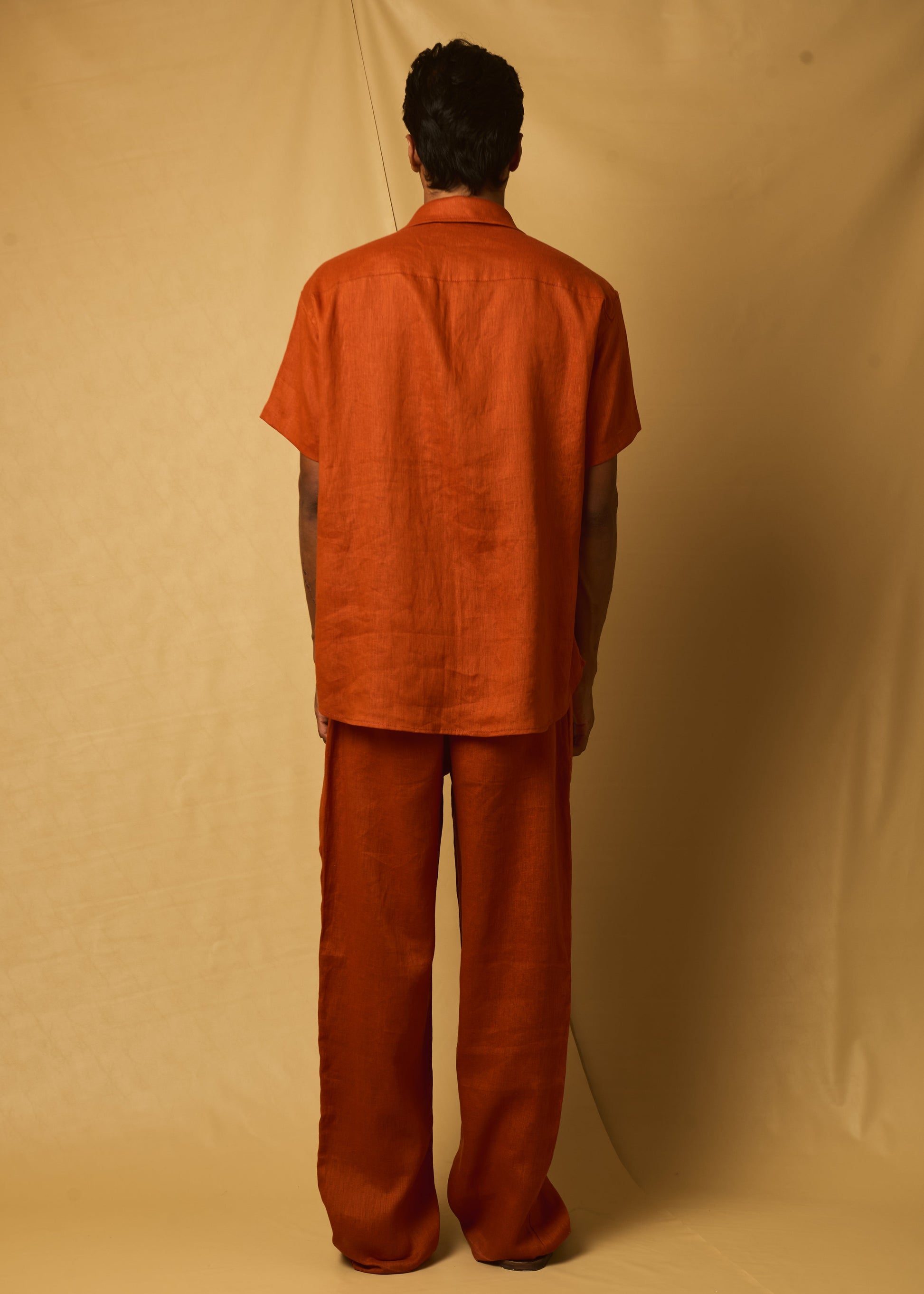 Tecido 100% linho com forma retangular na parte frontal com pesponto.